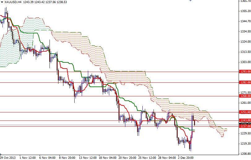 If the XAU/USD pair pulls itself out of the bears grip, it is likely that we will see the market testing the next strong resistance levels at 1268. Closing above the 1268 resistance could increase buying pressure and give the bulls a chance to march towards the 1293 resistance level. On its way up, expect to see some resistance at 1282.