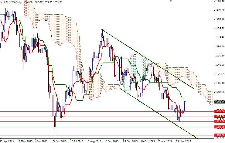 The XAUUSD pair rose to its highest level since November 20 after the bulls managed to push prices above the 1252 resistance levels. Although the markets are still waiting to see how the Federal Reserve will react to the changes in the economy and how U.S. policymakers deal with the budget deficit and debt ceiling issue, there is a growing conviction that the central bank is likely to hold off reducing its asset purchases until January or March to ensure the economy is on solid ground, and this is supporting gold prices at the moment.