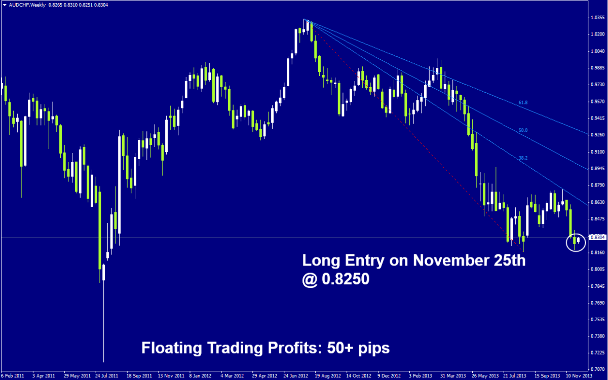 AUDCHF Long Signal from November 25th carries floating trading profits of over 50 pips