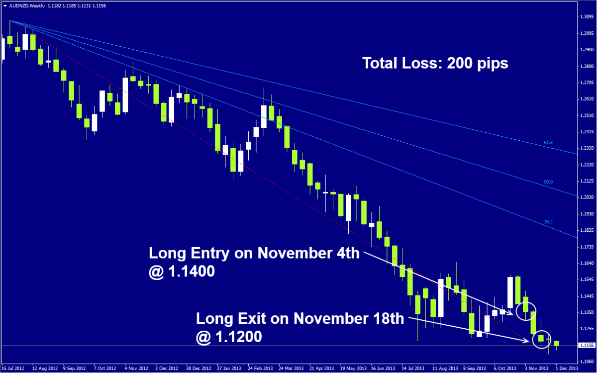 AUDNZD Long Signal from November 4th was closed for a loss of 200 pips as the stop loss order was triggered at 1.1200.