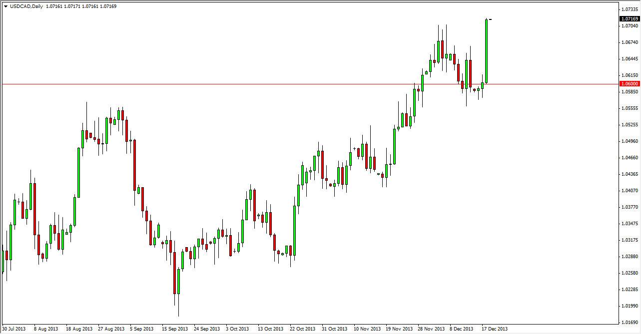The USD/CAD pair had an extraordinarily bullish session on Wednesday, lodging for the 1.06 handle and smashing through the 1.07 level. The 1.07 level was the area that I needed to see broken to the upside in order to become very bullish of this pair, and start adding to previous positions. This now shows a market that’s ready to break out to the upside and really take off, as there isn’t much in the way of resistance between here and the 1.10 level.