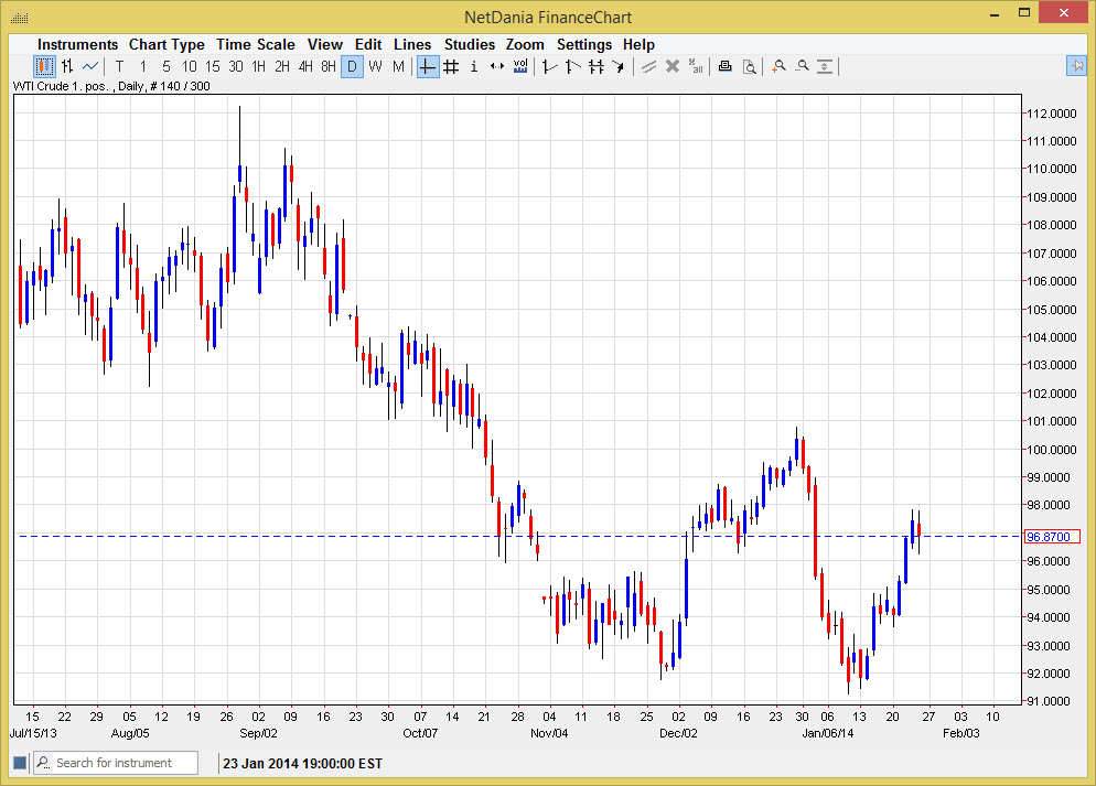 The $100 level above should continue to be resistive though, and it is there that I think the real fight begins in this market. The area between here and there has a lot of noise, and because of this I believe that pullbacks will continue to be buying opportunities. The sellers certainly seem to have a lot of concerns all of the sudden, and I believe that the sellers will use those pullbacks in order to get out of bad positions, or to simply take the profits that the market has fallen so far.