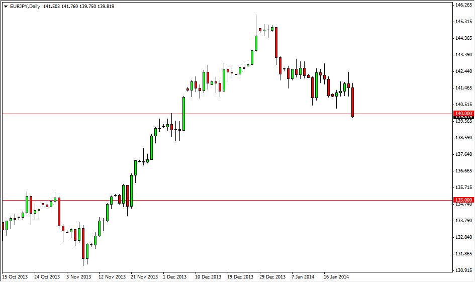 The EUR/JPY pair fell hard on Friday, slamming into the 140 level. The market has a lot of support below, extending all the way down to the 138.50 level, as we have seen quite a bit of noise in the general vicinity. However, the candle does look rather resistive and weak, and as a result I believe that this market will attempt to break down below that area. If we can break down below the 138.50 level, I feel that this market will more than likely make an attempt all the way down to the 135 handle. This is a necessarily anything to do with the Euro, but I think it has more to do with the fact that the Yen has accelerated its gains recently.