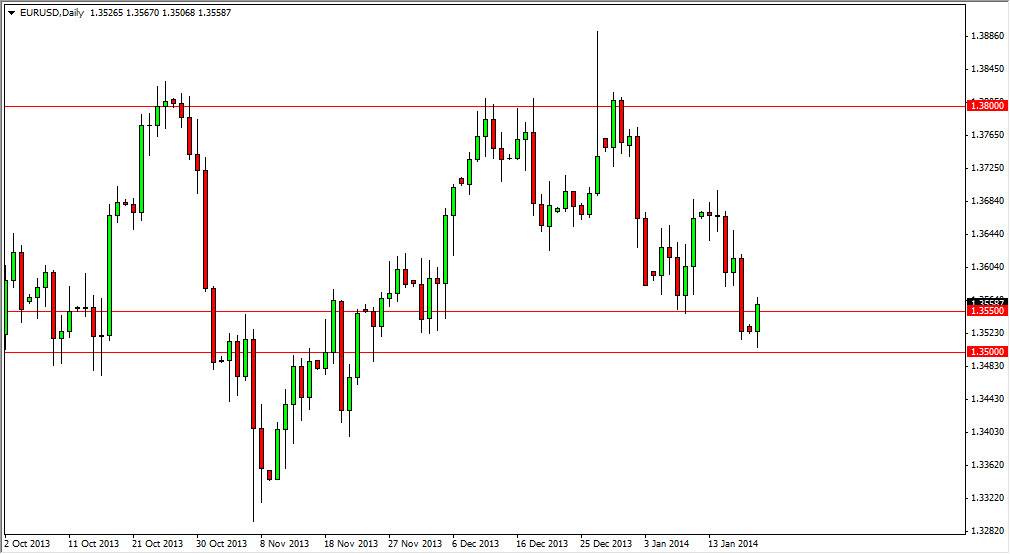 If we break down below the 1.35 handle, we could see choppiness all the way down to the 1.33 level. 1.34 could be supportive, as well as 1.3450. This pair has been choppy for several years now in general, so quite frankly this would be the “norm” in this market. I’m hearing more and more noise about high-frequency traders entering this market, and as a result this would not surprise me at all. After all, as traders tend to kill off markets rather quickly. This being the most liquid market would be the most obvious choice for them, so we will have to wait and see. Nonetheless, I believe in the short-term we should see some bullishness.