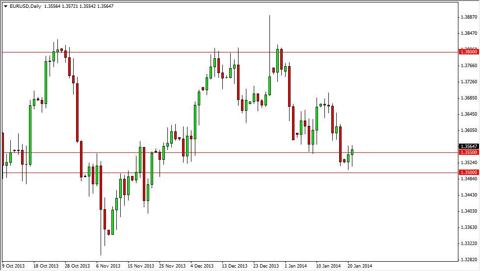 The EUR/USD pair fell initially during the session on Tuesday, but as you can see found enough support just above the 1.35 handle in order to bounce and form a hammer. The hammer of course suggests that there is quite a bit of support, and as a result I think this market will probably bounce. In fact, I see this market bouncing all the way to the 1.3650 level without too many issues. I would be buying this pair on a break of the top the hammer, but let’s keep one thing straight - this trade would certainly be a short-term one.