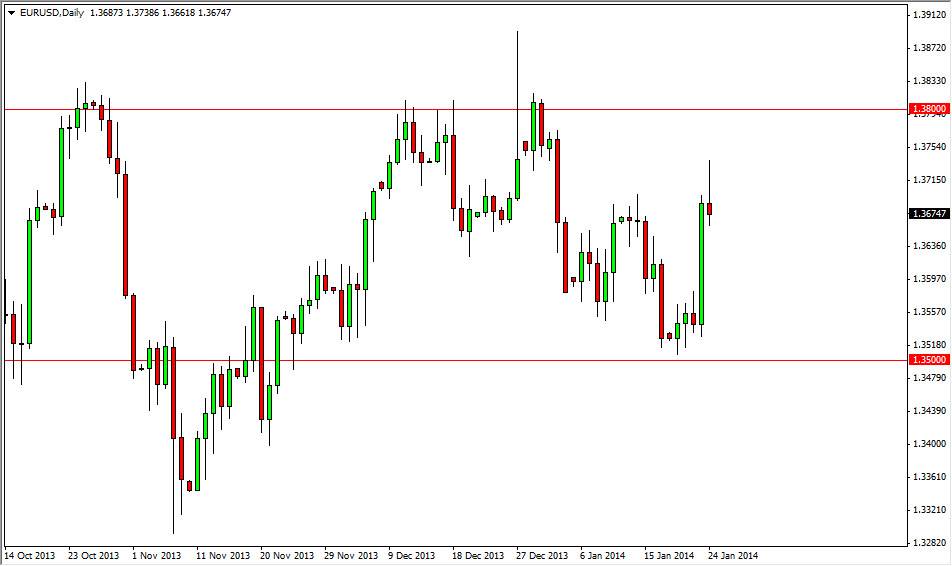 On a break above the 1.38 level, I think that this market goes to the 1.40 level, but will have a significant amount of noise. Because of this, it’s almost impossible to hang onto a trade above there, unless of course you have serious conviction. On the other hand, if you break down below the 1.35 level, this is a market that could really start to break down at that point, aiming for the 1.33 level.
