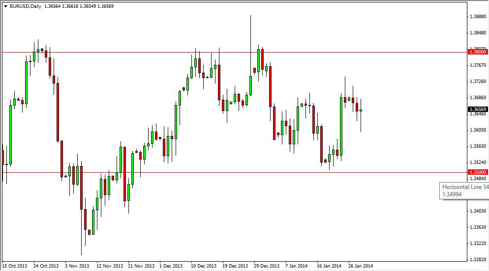 Short-term trading will be the way this market moves more than likely, as I believe we are currently trading between the 1.35 level and the 1.37 level. Even if we break above the 1.37 level, I see resistance of the 1.38 level, and as a result it’s going to be very difficult to hang onto a trade for anything more than a short-term gain. That being said, we will eventually break out in one direction or the other, and that could very well be a significant move as there is so much in the way of inertia building up in this market.