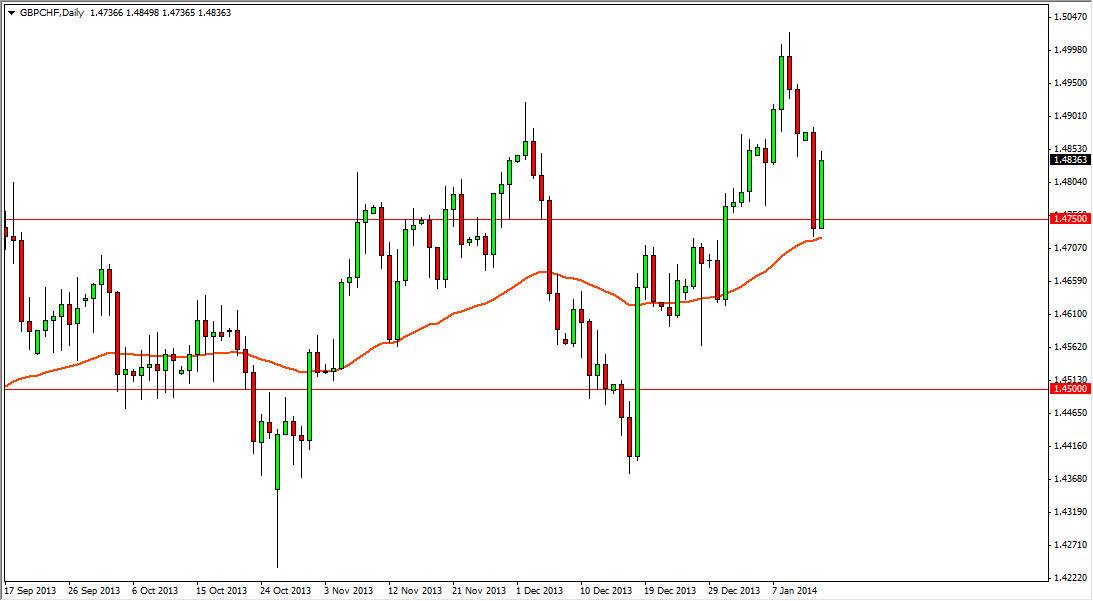 The GBP/CHF pair continues to track the risk appetite of global markets as it typically will do from time to time. During the session on Tuesday, we saw the 1.4750 level offered enough support to send the market higher. In fact, we wiped out roughly 85% of the losses from the Monday session at one point during the day. We closed at the upper part of the range for the session on Tuesday, and as a result it looks like the market is probably going to continue higher. After all, you can see that we have chopped back and forth but certainly have an upward bias.