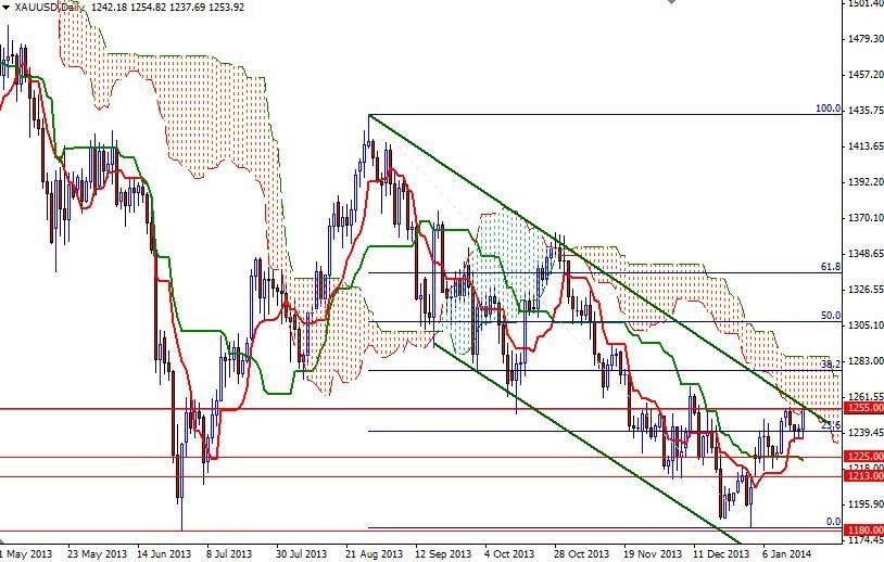 The XAU/USD pair (Gold vs. the American dollar) scored a gain of 0.94% on Friday as mixed economic data out of the United States continued to lure some investors back to the market. The pair broke above the 1245 resistance level, which has been a cap on prices for the last couple of days, after building permits and housing starts number came out weaker than forecasts. In my previous analysis I had pointed out the importance of this resistance level. Not surprisingly, the pair accelerated its ascend right after we climbed above this barrier and traded as high as 1254.82.