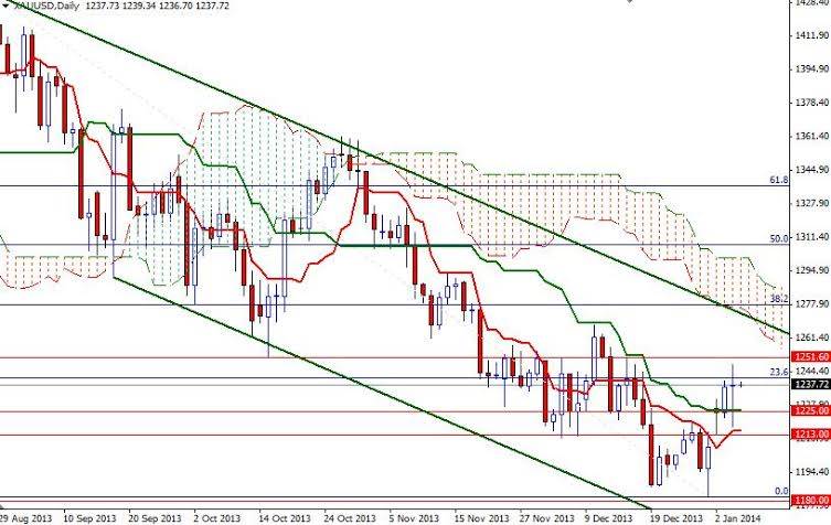 If the bulls manage to hold prices above the 1237 support level today, they might find another chance to test the 1252 level. The bulls have to breach that resistance level in order to gain enough strength to challenge the bears at 1268. However, if the bears take over and drag prices below the 1237 level, expect to see some support at 1231 and 1225. Closing below 1225 could confirm that prices will head back to 1213 next.