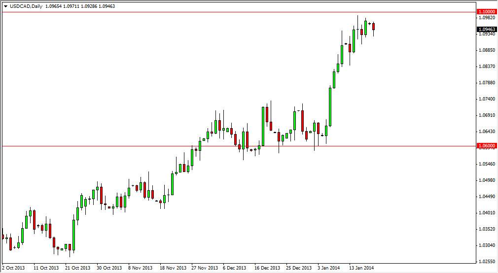 The USD/CAD pair had a negative session on Monday, but you must remember that was Martin Luther King Jr. holiday in the United States, and this pair predominantly trades most of its volume during the North American session. Because of that, this will be one Forex pair that can only be thought of in the larger context. That being said, we did get a little bit of a bounce towards the end of the session, and as a result form something along the lines of a hammer. The hammer of course is sitting just below the 1.10 level, which is massive resistance as far as I can tell. It’s a large, round, psychologically significant number, and an area that has produced reactions on the longer-term charts as well.
