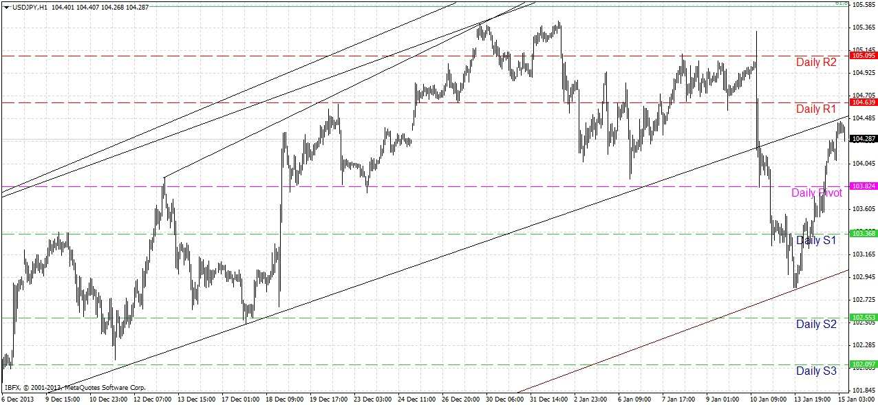 The most interesting thing is that we are close to retesting the broken bullish trend line that was breached after Friday’s NFP data. If we get up there again at a level confluent with today’s R1 daily pivot level at 104.64, and the price action confirms, it might be good for a quick short. I am not giving that as a signal.