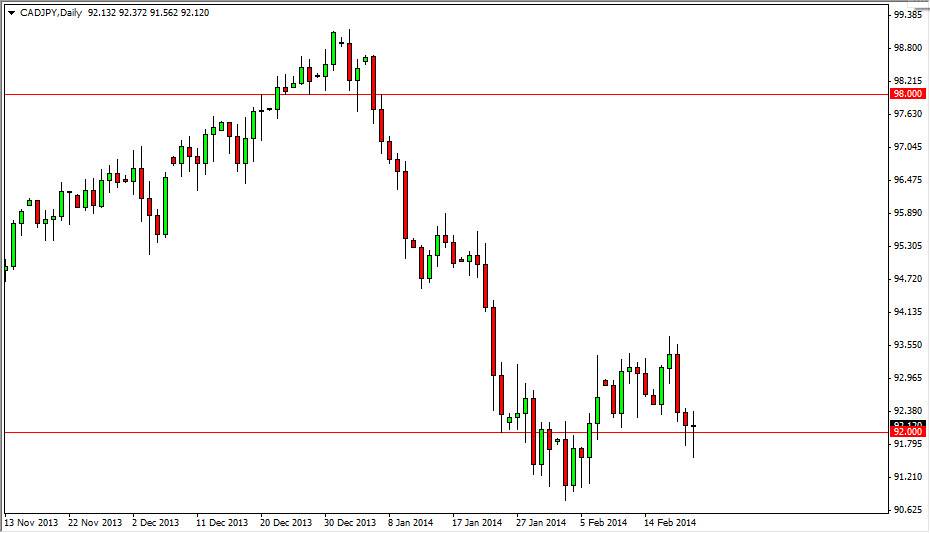 The CAD/JPY pair fell during the session on Friday, but as you can see found enough support at the 92 handle in order to bounce and form a hammer for the second day in a row. This is a pretty strong sign, and because of that I believe that this pair is in fact going to go higher. On a break of the hammer from the Friday session, the market would also be breaking the top of the hammer from Thursday. Because of that, I believe that the market show quite a bit of buying at that point.