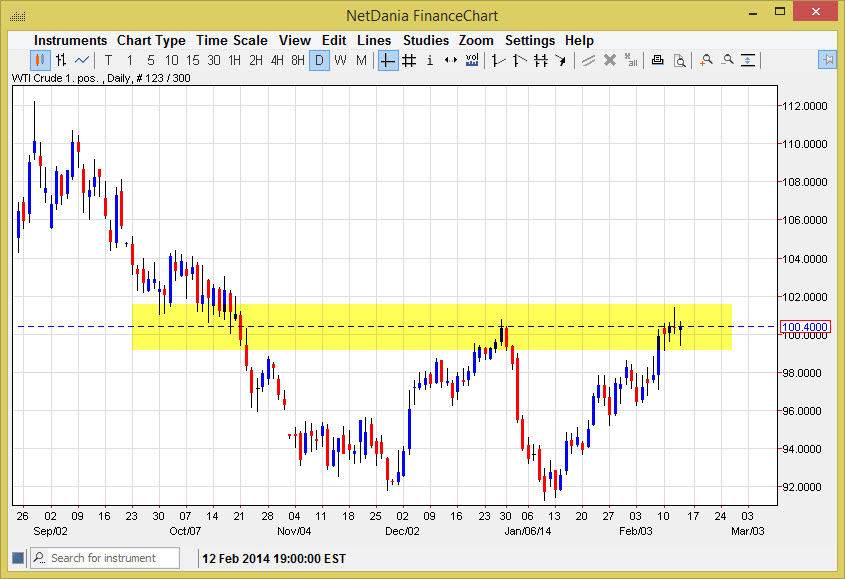 If you look back at the month of September, you can see that we were clustering just above current levels. Because of this, I feel that the resistance is strong, but the fact that the market continues to form hammers day after day suggests that the buyers are willing to step in every time the market falls. Because of this, I believe that eventually we will break through this cluster, but recognize the fact that there is a lot of resistance going all the way to the $104 level, and as a result it’s difficult to get overly bullish of this market. It’s true that I believe the markets going to go higher, but at what cost?