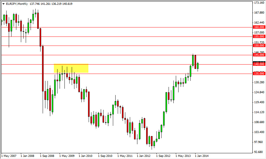 If you look at my forecast for the month of March in the EUR/USD pair, you see that I noticed that the 1.38 level might be massive in its implications as to the strength of the Euro. I think if we can get above that level, this pair should just absolutely skyrocket. This is because unlike the US dollar, the Japanese yen does not have any tapering to back it up. So if the Euro can do well against the US dollar, it should absolutely pummel the Japanese yen.