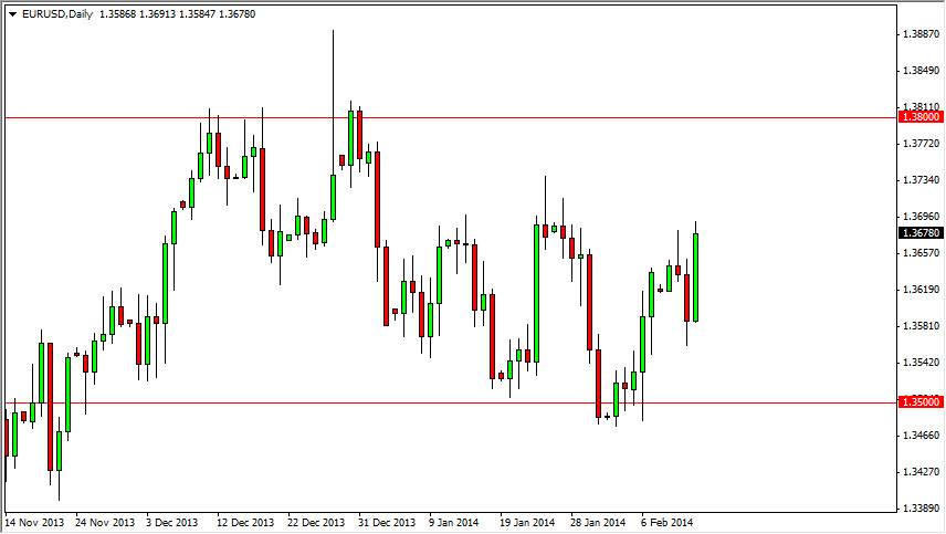 The EUR/USD pair rose during the session on Thursday, breaking the top of the previous session highs from Wednesday, and even more impressively breaking the top of the shooting star from the Tuesday candle. However, it appears that the 1.37 level has offered enough resistance to keep the market down, and as a result we will more than likely see this market struggle here. However, what I find most interesting is the fact that there has been such resistance here that I wonder whether or not we are going to pull back. I do not like this pair these days, it simply chops around back and forth.