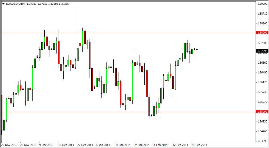 The EUR USD pair went back and forth during the session on Monday, essentially settling nothing. However, we did show the 1.37 level to be supportive still, and as a result I believe that we are still in the consolidation area that is bordered by both that level, and the 1.38 level on the top. Because of that, the market should continue to be fairly choppy and be the affair of short-term traders, which of course keeps me out of the market as I choose not to sit in front of the computer all day. That’s essentially what you will have to do in order to trade this pair, but that’s not to say that this market isn’t worth following.