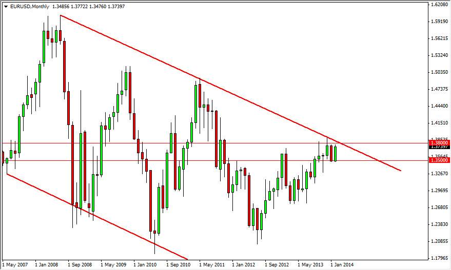 The EUR/USD pair continued to bounce around in the relatively tight range that we have seen for several months during the month of February. What I find interesting about the monthly chart attached to this article is that we are coming up upon the 1.38 resistance level yet again, and we have a fairly significant downtrend line that forms the top of a massive potential channel. With that being said, I think that this market might be negative for the Euro, but the real question is whether or not we can break down below the 1.35 level. I don’t know that’s going to be the case, I’m fray that we are going to see another four weeks of choppiness in this marketplace, which of course has made this currency pair almost impossible to trade.