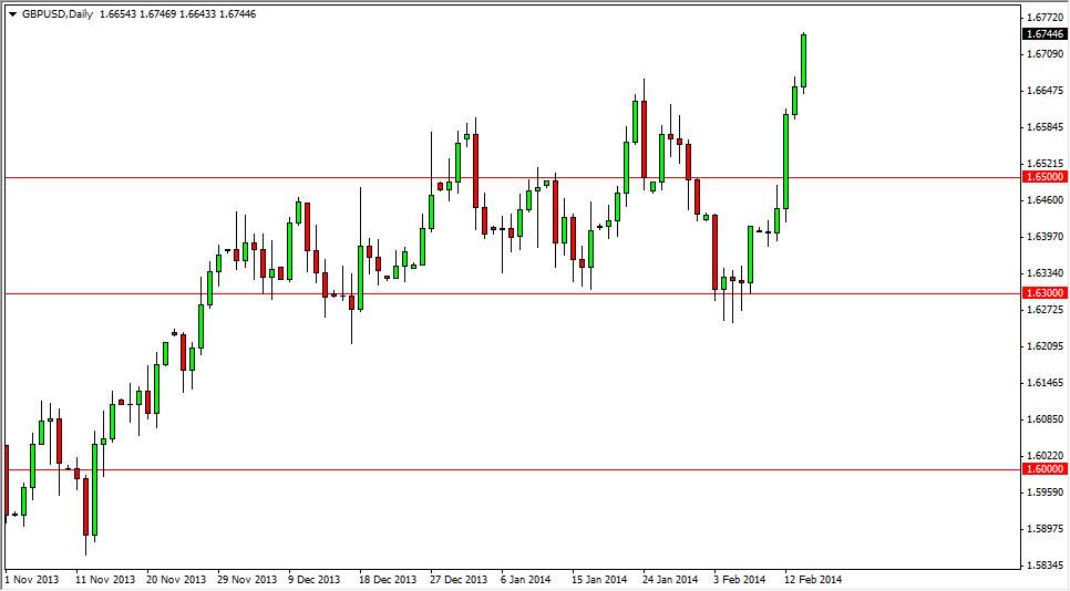 The GBP/USD pair rose during the session on Friday, finally breaking out well above the 1.6650 level. Because of this, I feel that this market is ready to go to its next natural target, the 1.70 level. This is an area that I’ve been aiming for during the last several months, and it appears we have now cleared the last hurdle to get there. A lot of this will be based upon the inflation numbers out of the United Kingdom coming in a little hotter than anticipated so the Bank of England will have to let monetary policy tighten, at least in its natural sense, via the bond markets.