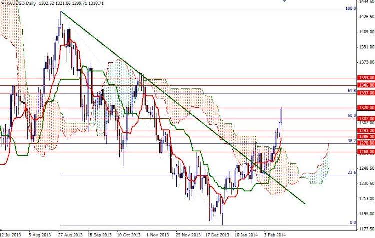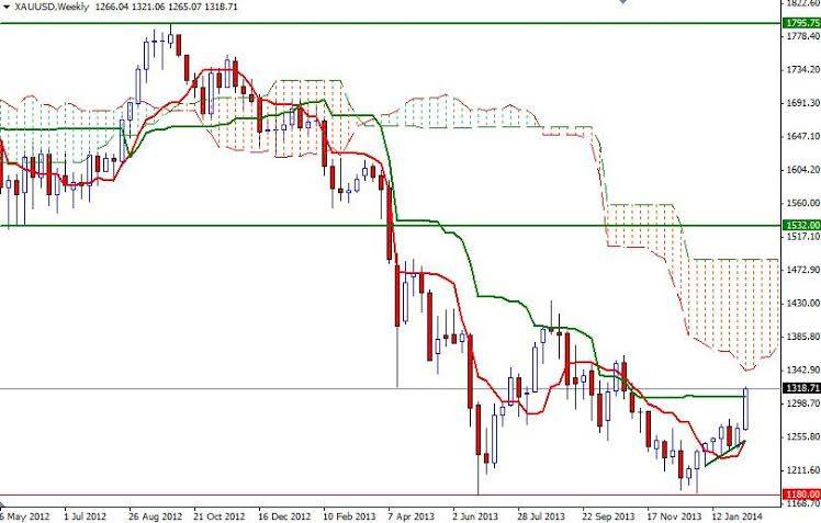 The XAU/USD pair (Gold vs. the American dollar) had a positive week as weakness in the U.S. dollar helped prices boost their momentum. Concerns about the negative impacts of the U.S. Federal Reserve's plan to steadily withdraw monetary stimulus on emerging markets have been providing support for safe-haven gold since late January. The XAU/USD pair had extended its gains and jumped to a three-month high on Friday after the bulls managed to shatter the critical barrier at the 1307 level.
