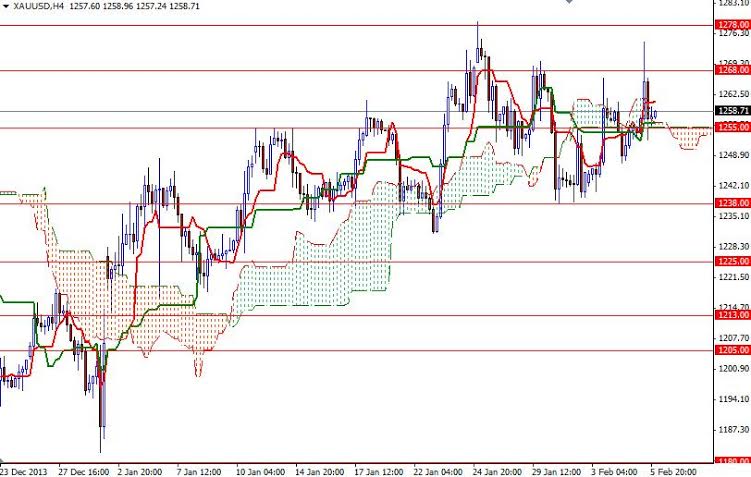 Gold prices (XAU/USD) settled slightly higher after a volatile session yesterday. The pair traded as high as 1274.40 after the ADP private jobs data fell short of market expectations but prices pulled all the way back to 1255 support level as sellers stepped in. Automatic Data Processing research institute said companies added 175K workers in January, less than expectations of 191K.