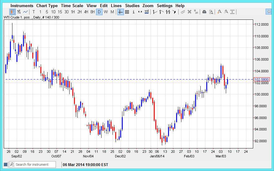 Because of this, I think that as pullbacks appear there should be plenty of buying opportunities going higher. This market will certainly have a lot of noise between here and $105, but at the end of the day I believe that the fact the market pulled back and formed a hammer, only to bust out to the upside again. This shows that there is a real resilience to the marketplace now, and because of this I believe that every time we fall there should be plenty of people underneath willing to buy.