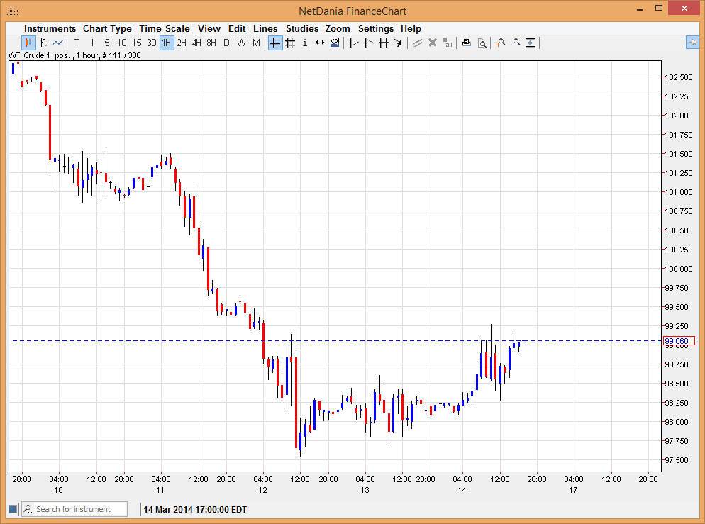 While I typically show the daily chart in this contract, the reason I’m showing the hourly chart is that just above the $99.50 level you can see that the market fell rather precipitously six or seven days ago. It’s because of this that I believe that the market will shoot through the $100 level rather quickly and up to the $101.25 level without too much in the way of delay. I think we’re pressing up against significant resistance, but it short-term resistance at best. With that, I’m very bullish of this market.