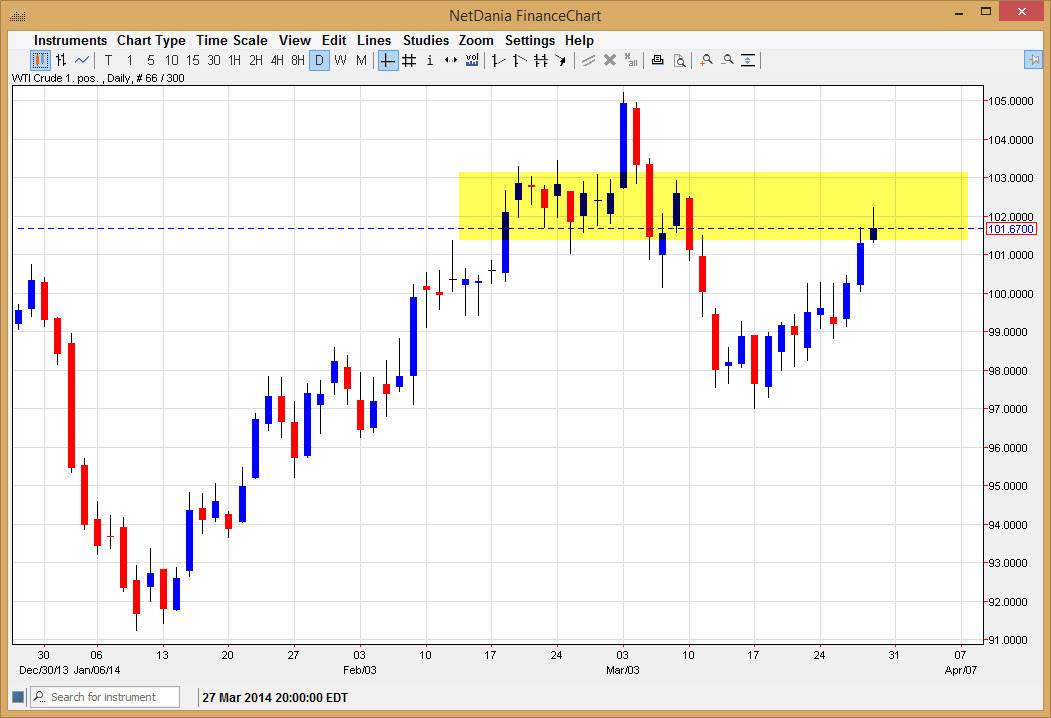 The WTI Crude Oil markets try to rally during the session on Friday, and although we did finish with a positive close, we ended up forming a shooting star as well that is based on the $102 level. Because of this, I feel that the market will more than likely try to pull back in this general vicinity as we approach a significant consolidation area.