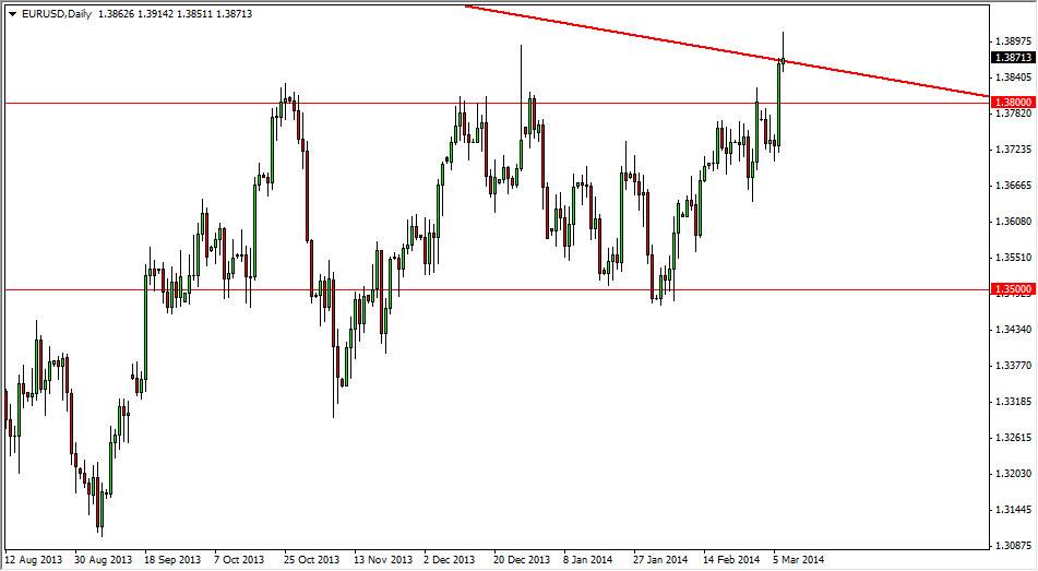 The EUR/USD pair rallied during the session on Friday, but gave back quite a bit of the gains after the nonfarm payroll number came out better than anticipated.The EUR/USD pair rallied during the session on Friday, but gave back quite a bit of the gains after the nonfarm payroll number came out better than anticipated. However, one thing that is being overlooked is the fact that we are approaching a significant amount of resistance. In fact, the trend line that is shown on the chart is from a monthly downtrend channel. This channel started at the beginning of the financial crisis, so it is indeed major in its implications