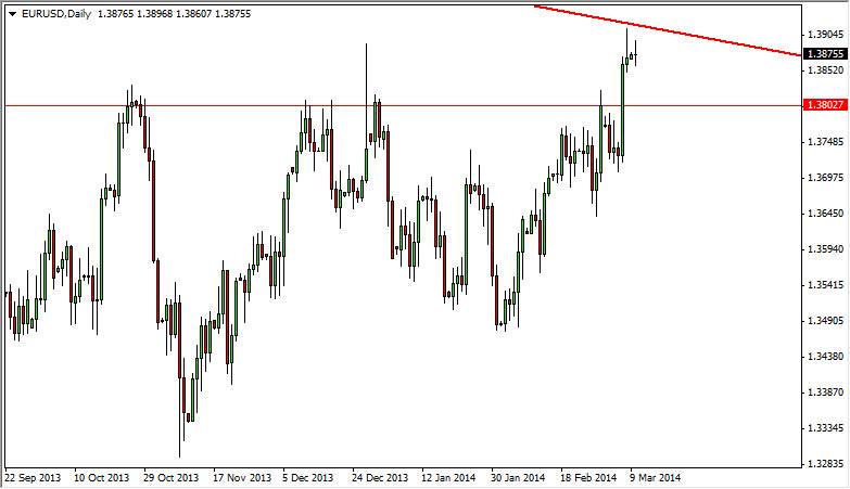 The interest-rate differential between the two currencies still favors the Euro, and last week we had the European Central Bank reiterate the fact that it was not prepared to do anything as far as loosening monetary policy anytime soon. That of course is a very bullish thing for the Euro, even though the Federal Reserve is in fact tightening monetary policy by tapering off of quantitative easing. Simply put, the interest-rate differential between the two currencies should continue to be in favor of Europe for the foreseeable future.