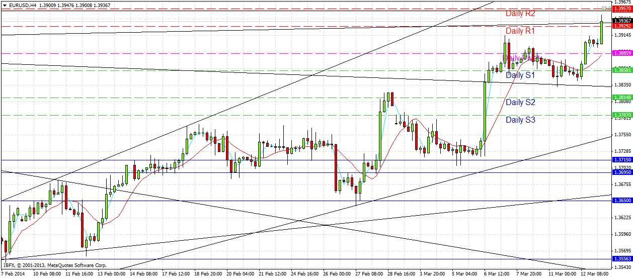 We are too far away from any obvious levels looking like good buying opportunities. The nearest level looks to be 1.3715. However we are very close to some likely resistant levels at 1.3955 and 1.3975, as well as the trend line I previously mentioned. The 1.3955 level is exactly confluent with the 50% Fibonacci retracement level of the major downwards from the pair’s all time high to a multi-year low made in 2010, as well as today’s R2 GMT daily pivot point, so this level really ought to have a resistant effect.