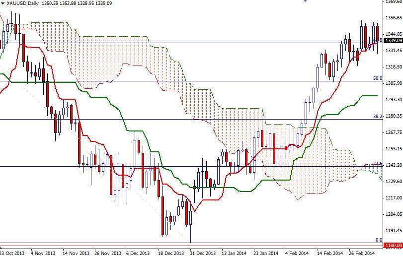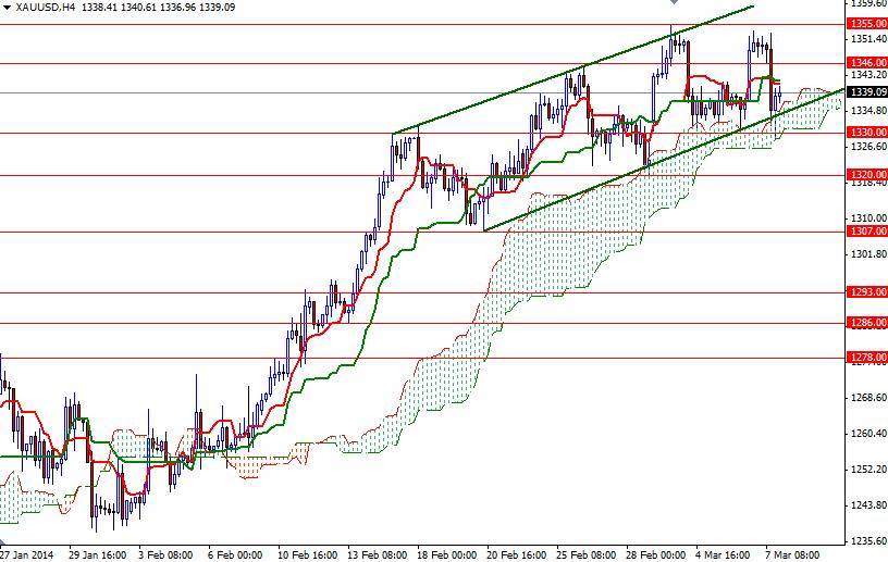 The XAU/USD pair closed Friday's session lower than opening but remained within the previous four days trading range. Gold prices rose 0.6% over the course of the week as investors turned to the relative safety of the precious metal. The pair traded as low as $1328.95 an ounce after data released by the Labor Department showed that the U.S. economy added 175K jobs in February and the unemployment rate increased to 6.7% from 6.6%.