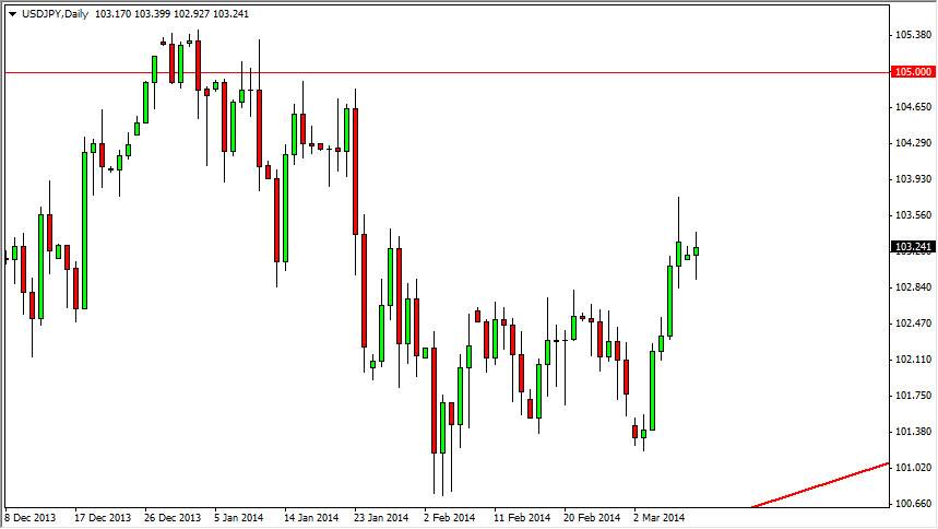The USD/JPY pair initially fell during the session on Monday, but as you can see found enough support below the 103 level in order to turn things back around and form a hammer. The hammer of course is supportive, but we have a shooting star from Friday as well, telling me that there might be a bit of confusion. Ultimately, the 103 level was massively resistive previously, and now should offer support as it appears to be doing so. This is classic technical analysis, so of course has caught my attention. On top of that, I have to admit that I am biased to the upside in this market longer term anyway, so of course I am short the Japanese yen at the moment.