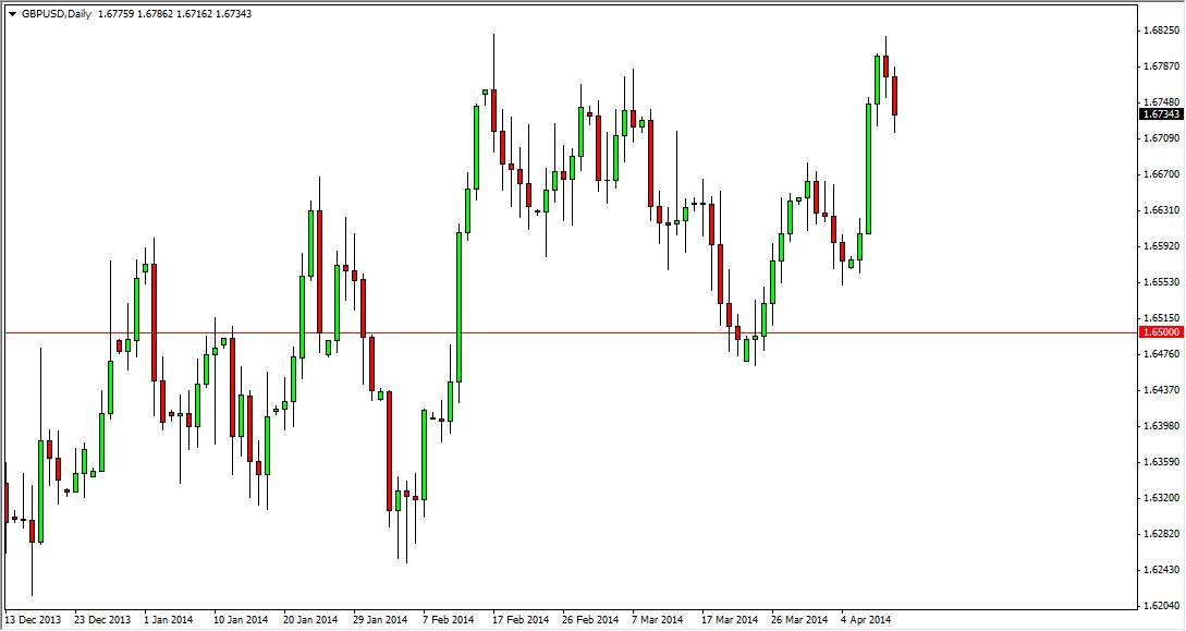 The GBP/USD pair fell during the session on Friday as you can see, but remains above the 1.67 level, an area that I believe will begin significant support based upon the previous consolidation area that we had been involved in during February. I also think that there’s plenty of support all the way down to the 1.65 level, so quite frankly I am in “buy only” mode.