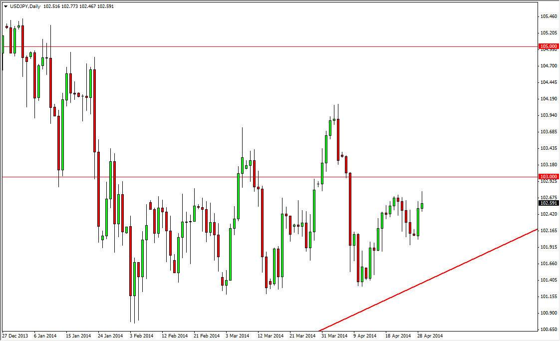 I believe that there will be several stops along the way, but ultimately we should end up at the 105 level. It might take a while, because I see the shooting star as resistance, the 103 level as resistance, and the 104 level is resistance before we even get there. In other words, expect a lot of choppiness but I still believe that we have enough bullish pressure underneath to continue going higher, albeit long-term.
