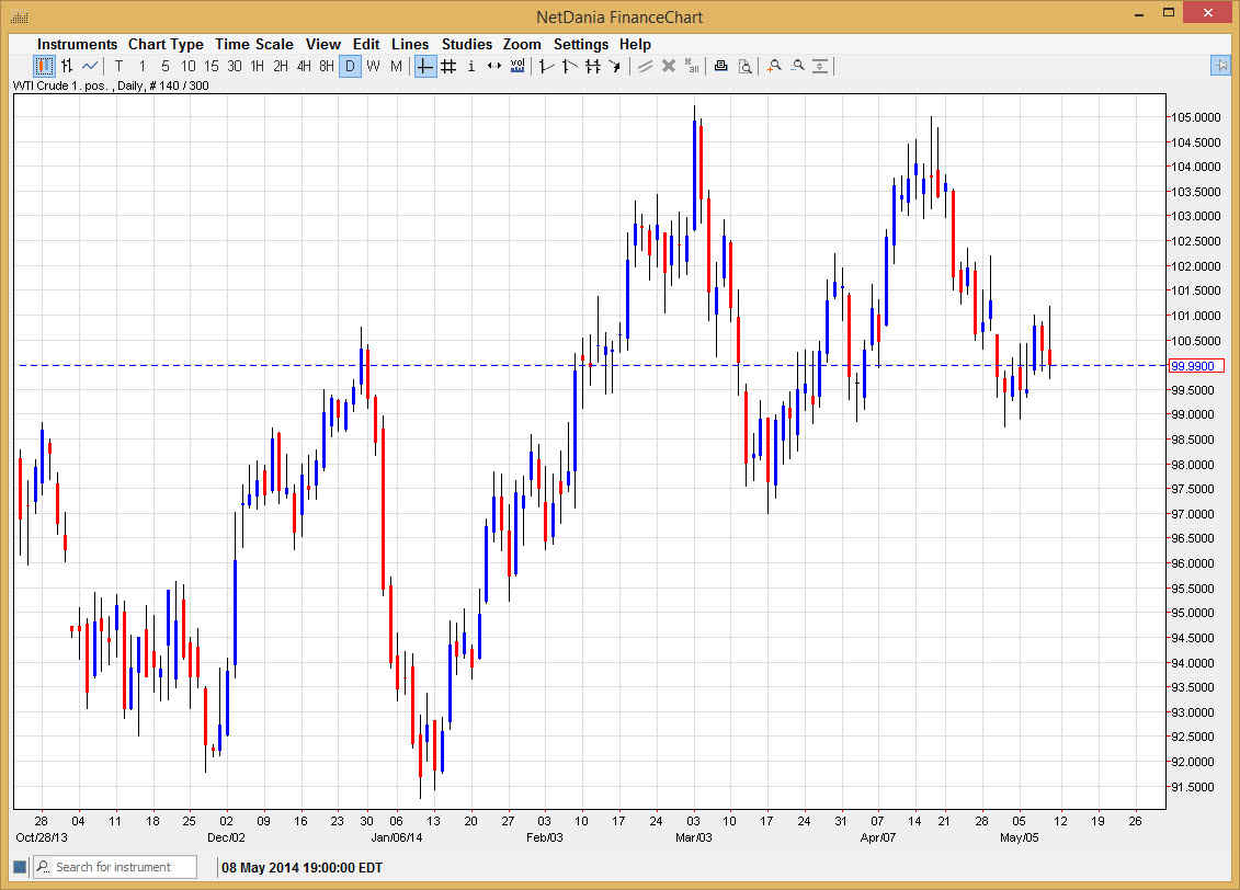 We are starting to get relatively close to the summertime, so I’m starting to wonder whether or not we aren’t simply trying to form some type of consolidation area for that season. After all, quite often the summertime gets to be very quiet in the futures markets, with oil being no exception. Because of that, I’m paying a lot of attention to the $97 level on the bottom, and the $105 level on the top. It’s very possible that the market just bounces around in that general vicinity trying to find some type of clarity. With the lack of liquidity that we often see in the summertime, I believe that this is probably most likely with going to happen over the next several months.