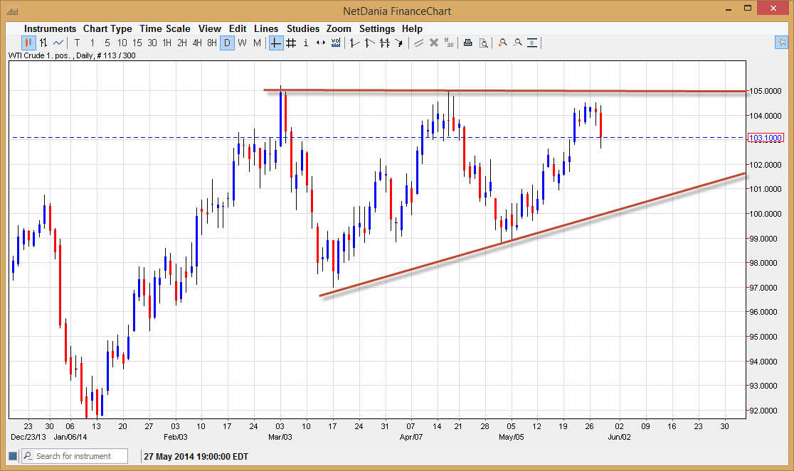 The WTI Crude Oil markets fell during the bulk of the session on Wednesday, testing the $103 level. That being the case, it appears that we are staying within the consolidation area that we have been in, and I have to point out the fact that there is a gap that formed just below, and it could in fact cause quite a bit of support in this general vicinity. It really doesn’t matter to me, I am bullish of the market anyway, and recognize that selling really is in an option as we are most obviously in an uptrend. This uptrend should continue to push the market higher given enough time, and I do think that ultimately we will finally break above the $105 level, which would signify that the markets ready to continue the next leg up.