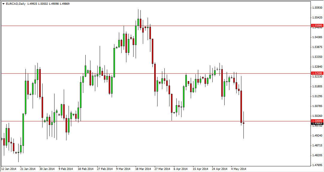 The EUR/CAD pair went back and forth during the session on Friday, hovering around the 1.50 level. This is obviously a major psychologically significant number, so really doesn’t surprise me that buyers and sellers both stood up and took notice during the session. On top of that, the Euro is sitting on support just about everywhere in the markets, and as a result it would make sense that the Euro is somewhat afloat at the moment. However, I see potential for a significant break down if we can break below the lows of the session on Friday, which is essentially the 1.49 level.