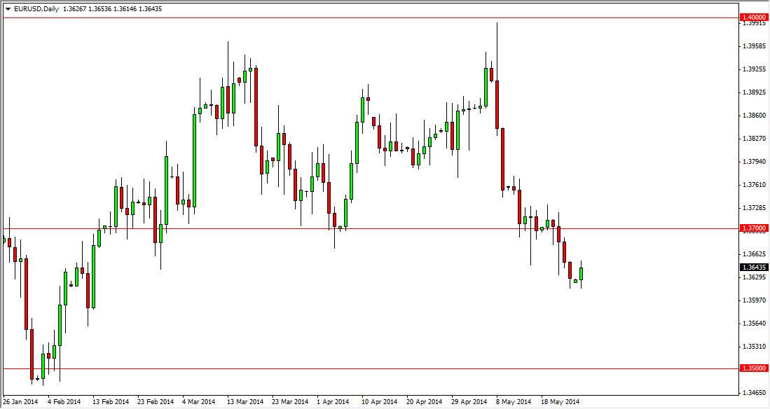 The EUR/USD pair rose during the session on Monday, as the Americans and British both took the holiday off. That being the case, I’m not overly impressed by the fact that we held here, I think it’s simply a bit of a relief rally if you well. However, I think that ultimately this market will be a “sell the rallies” type of market for the short term, and I think that any move towards a 1.37 level will fact be met with selling pressure. On top of that, a break down below the 1.36 level almost guarantees a move to the 1.35 handle, which for my money is a much more significant support area on the longer-term charts anyway.