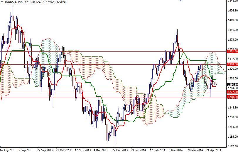 However, the XAU/USD pair has been range bound since we entered the cloud on 4-hour chart and as you can see the 1285 level has been supportive recently. If the bears can increase selling pressure and shatter this support, it is very likely that the pair will revisit the 1277 level next. A close below this level would suggest that 1268 will be the next target. To the upside, the bulls will need to break through the 1300 resistance level where the top of the cloud sits (4-hour chart) in order to gain more traction and reach the 1307 level. Beyond that, the bears will be waiting at 1311 and 1316.