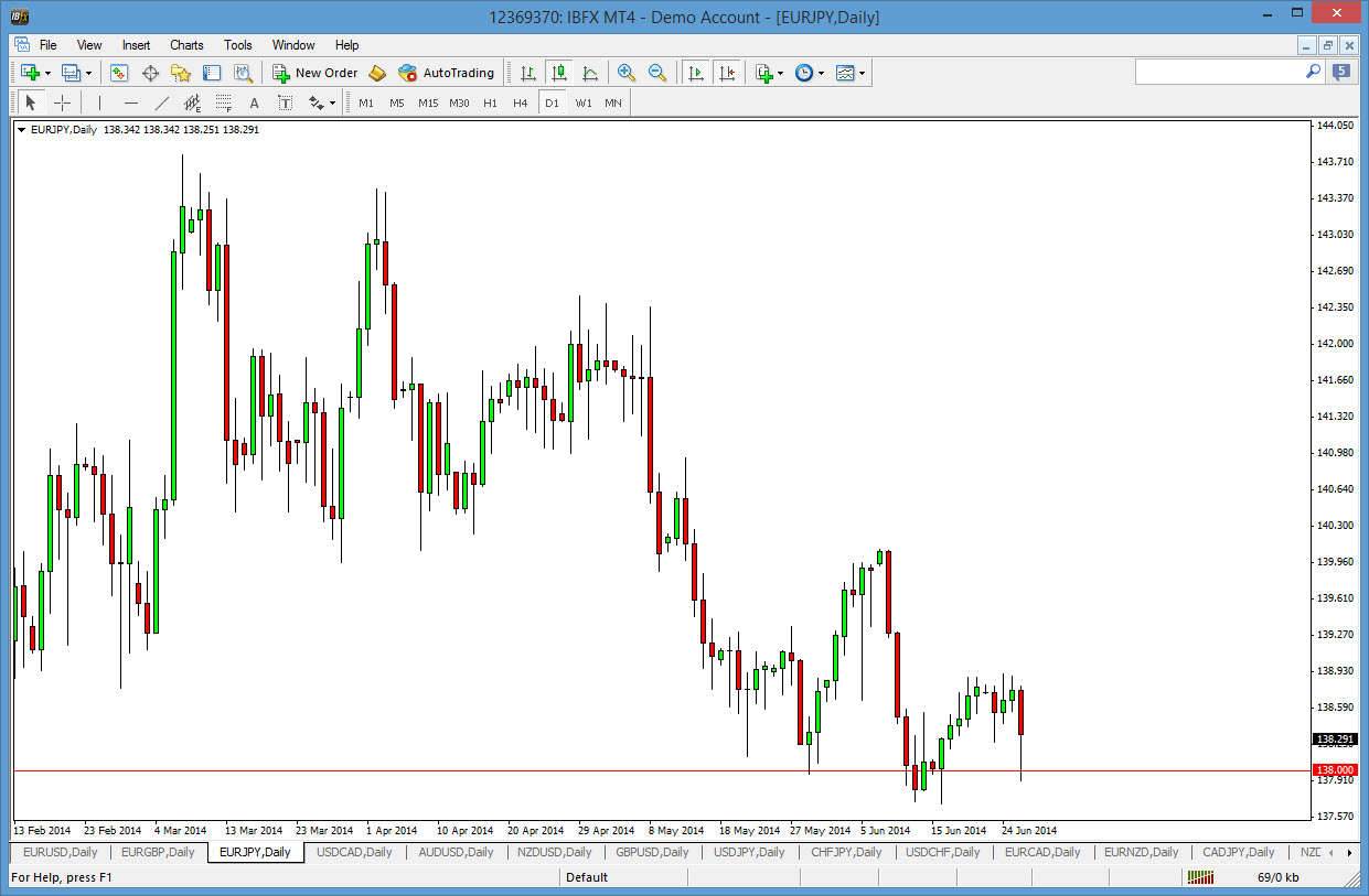 The 138 level is massive as far as supporting resistance is concerned on the longer-term charts, and as a result I will continue to play off of this level quite a bit. On the other hand though, if we broke down to a fresh, new low, I think this market could drop to the 135 level which is the next major support area in this market. I would be very aggressive down there looking for long-term buy-and-hold type of situations, as that area is even more interesting and certainly more supportive in longer-term charts.