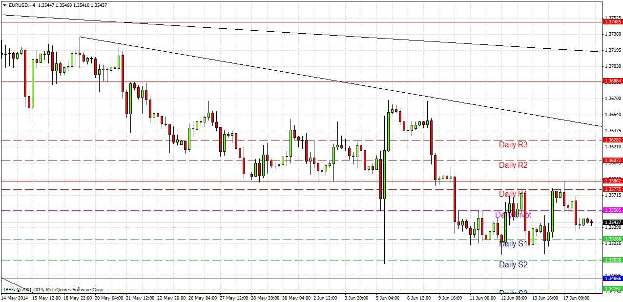 Today is likely to be a very quiet day ahead of the FOMC Statement and Projections that are due later during the New York session after London closes. Very little is likely to happen before then and it is fairly certain we will not get anywhere near the resistance at 1.3688 or the support at 1.3487, which is why no signals can be given for today’s London session.