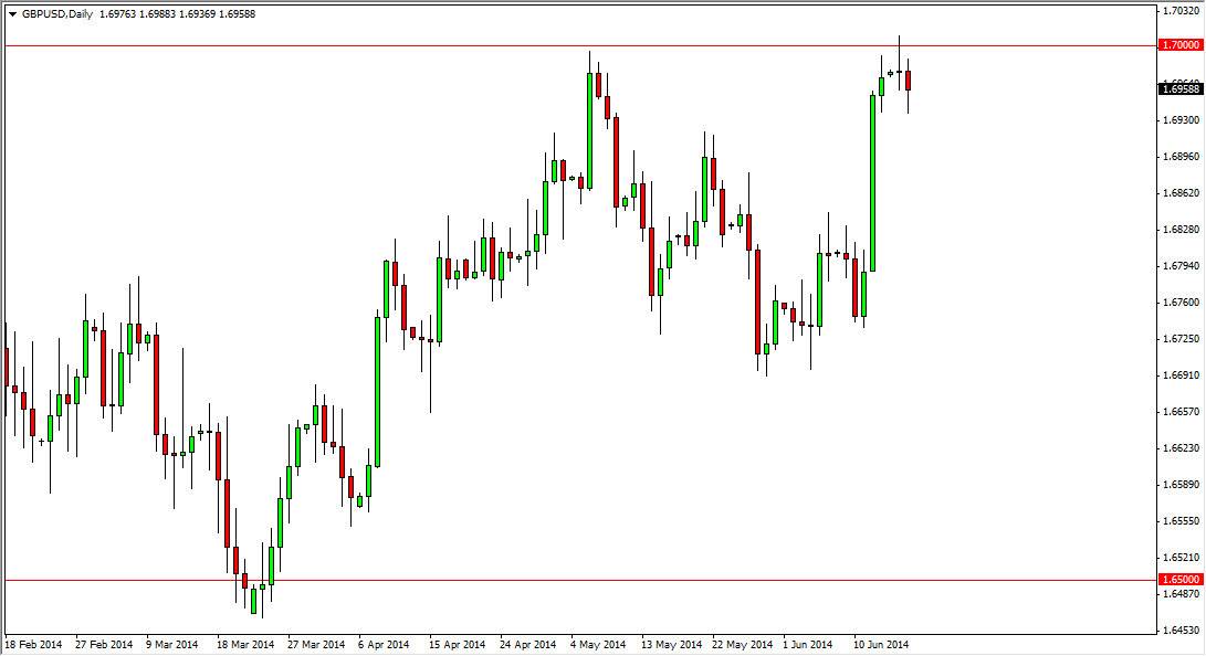 The GBP/USD pair fell during the majority of the session on Tuesday, but found enough support near the 1.6950 handle to turn things back around and form a hammer. This is a market that has been extraordinarily bullish as of late, and as a result I think this hammer simply shows that we will continue to see pressure to breakout above the 1.70 level. The shooting star that formed on Monday shows that there is significant resistance there, but I feel that the market is going to try and try again until we breakout.