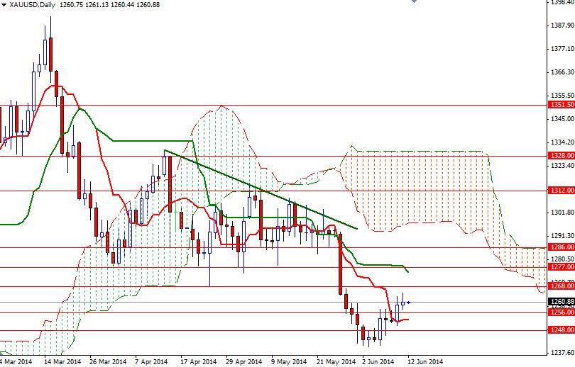 To the down side, expect to see support in the 1256/5 area where the Kijun-Sen (twenty six-day moving average, green line) currently resides. If this support gives way, we could move back to the 1249/8 area. A daily close below 1248 would shift things to the bears once again and increase speculative selling pressure.