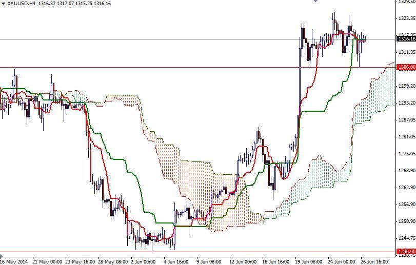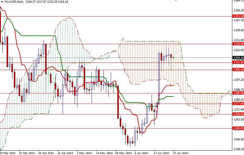 After three consecutive days of gain, the XAU/USD pair closed yesterday’s session lower than opening. The pair initially fell to its lowest level in five days but weaker-than-expected consumer spending data helped gold to recover some of its losses quickly and close at $1316.37 an ounce. Worries over escalating conflict in Iraq, signs of a pickup in inflation and expectations the U.S. equities will take a breather from their recent advances have been driving this market’s bullish activity.