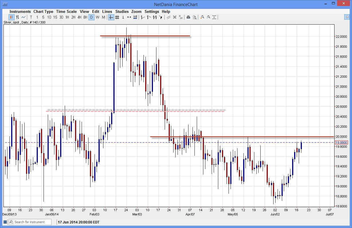 For myself, I believe that the $22 level is a longer-term target of the summer market, and that we will in fact reach that level given enough time. The Federal Reserve and its meeting minutes during the session on Wednesday suggested that although they are going to taper off of quantitative easing by another $10 billion per month starting in July, the truth is that the Federal Reserve remains fairly loose with their monetary policy, and that should do well for precious metals and hard commodities in general.