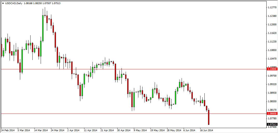 The USD/CAD pair fell hard during the session on Friday, breaking below the 1.08 level. This was an area that I thought was going to hold as support, and since we are broken down below it, I believe that this is a fairly significant signal at this point. However, I should point out that there is an uptrend line below, somewhere near the 1.06 handle. It is because of this, I think that the significant break down is probably more of the short-term variety, and it’s not until we break down below the 1.06 level on a daily candle that I feel that the trend has reversed to the downside yet again.