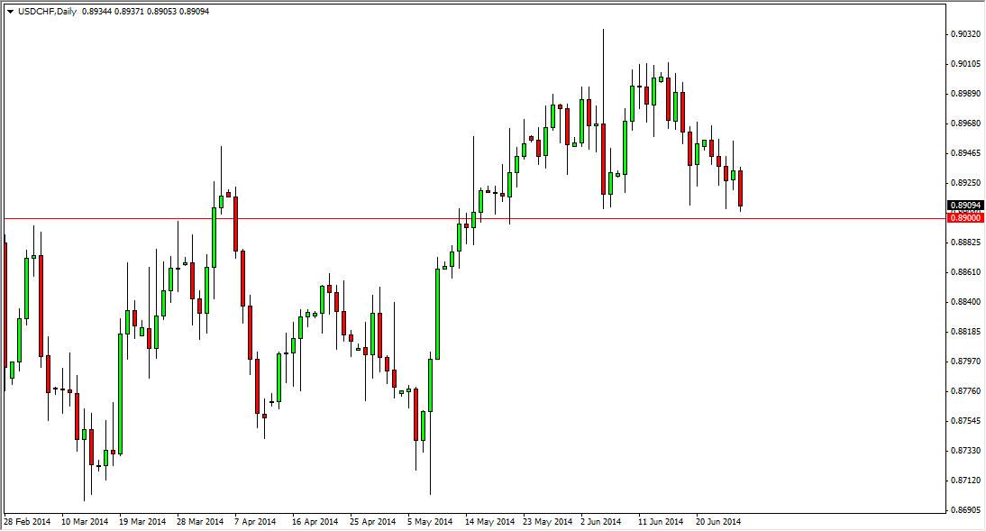 The USD/CHF pair fell during the session on Friday, but sits just above the 0.89 support level. This level has been rather reliable so far, and as a result it’s difficult to sell this market until we clear that level significantly. However, we don’t necessarily have a supportive candle though, so it’s almost impossible to start buying quite yet. After all, the market broke down significantly during the session on Friday and even closed at the very lows. With that, it suggests that there will be continued selling pressure.