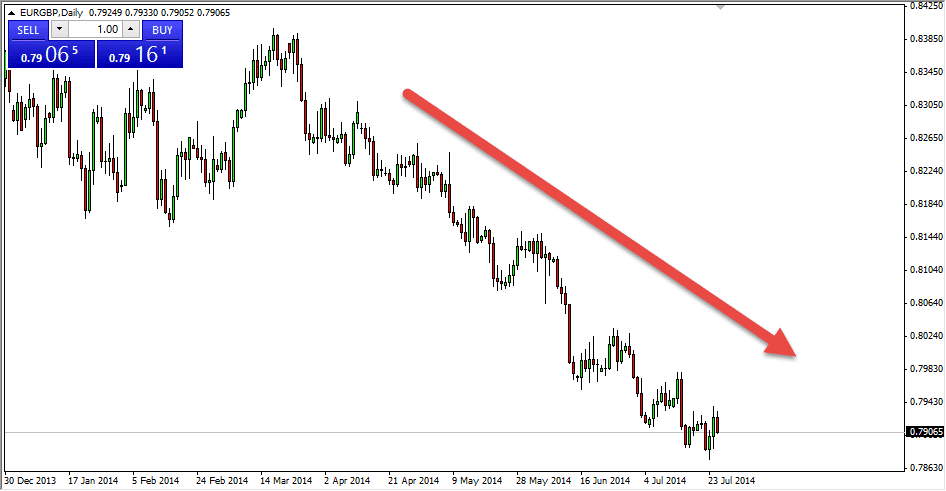 The EUR/GBP pair fell during the day on Friday, continuing the bearish pressure that we have seen for some time. Quite frankly, I feel that the market breaking below the 0.80 level was in fact significant, and as a result I believe that we have started the next leg lower. With that, I anticipate seeing this market head to the 0.7750 level, and then possibly even lower than that, down to the 0.75 handle. That of course is a bit of a longer-term target, but ultimately I think it does get hit.