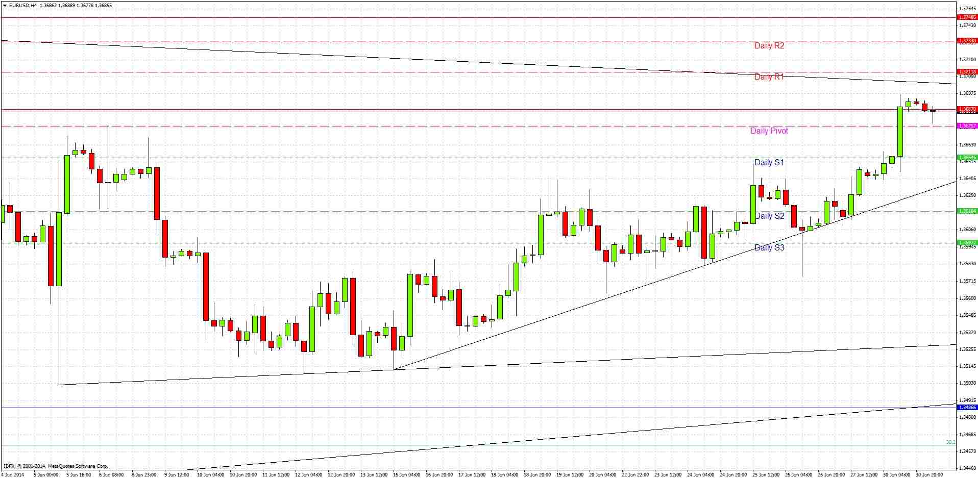 Yesterday’s signals were not triggered as the price did not print bearish action after the first touch of 1.3687.